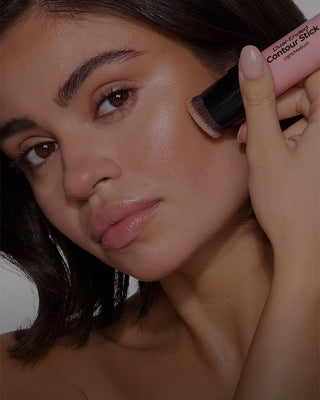 The first step in underpainting is to contour. Each face shape suits slightly different contour placements, so head to our contour guide here to find out where you should place yours or use the image below as a general guide for any shape. After dabbing our Instant Contour Cream Bronzer onto the desired areas, blend and buff the contour gently into the skin using our Pro Foundation & Buffing Brush or Highlight & Contour Makeup Blender.
