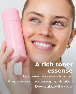 MCoBeauty HYDRATE & PREPARE MILKY TONER is a rich toner essence that helps moisturise skin and keep it feeling calm while preparing it for makeup application.