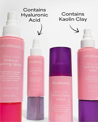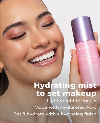 MCoBeauty ULTRA LOCK SETTING SPRAY GLOW is a hydrating formula designed to support a glowing appearance, while also setting your makeup.