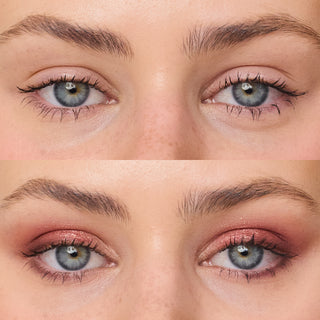 For a more dramatic look, using a denser eyeshadow brush blend the smoky shade into the crease. Can also be used along the upper and lower lashline.