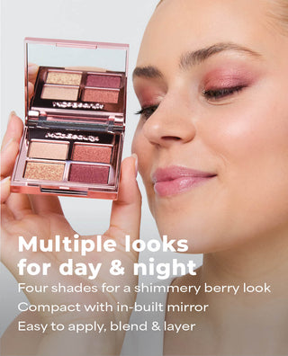 MCoBeauty LUXE COLLECTION EYESHADOW QUAD contains four high-impact pressed eyeshadow shades. These curated shades can be worn alone or blended together to create endless eye looks, suitable for day or night.